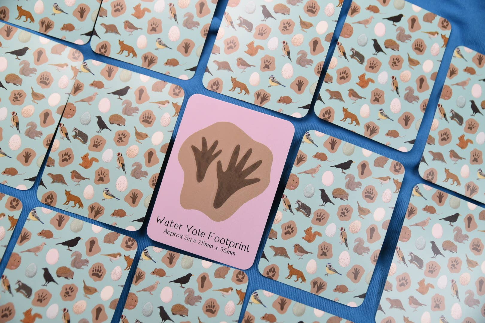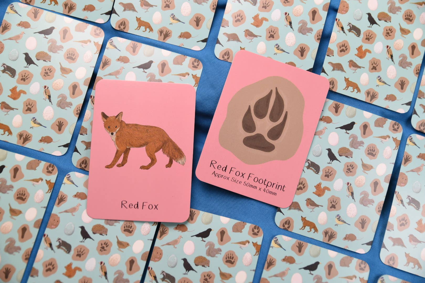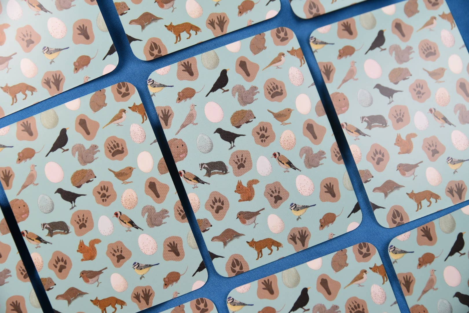 This new set of cards has a selection of british animals, birds, prints and eggs on the back and each pair has a lovely bright matching background. The animal and bird cards include their names, and the footprint and egg cards include their names as well as a rough size.