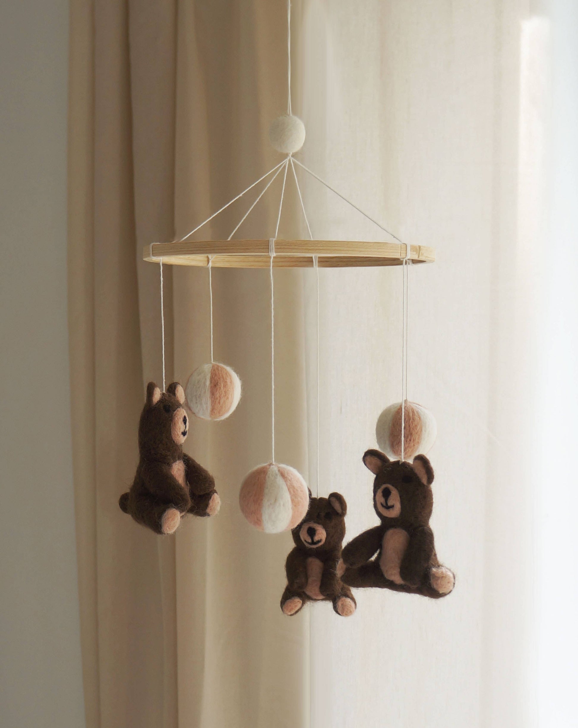 Beautiful and detailed mobile with bears. The mobile is beautifully wrapped with a cute ribbon — perfect gift to a babyshower, birthday or as a maternity gift.
